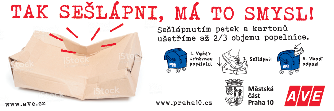 Na desítkách míst Prahy 10 mohou občané nově narazit na vizuály, které dávají tipy, jak může každý z nás omezit množství odpadu, zejména jednorázových plastů (desatero), a zároveň je upozorňují, že sešlápnutím PET lahví a kartonů při jejich vyhazování do tříděného odpadu se ušetří až 2/3 objemu popelnic (kampaň AVE Tak sešlápni, má to smysl). Radnice plakáty umístila na šedesáti lavičkách na různých místech městské části. Osvětovou akci bude propagovat i na dalších „reklamních plochách“ a šířit prostřednictvím vlastních komunikačních kanálů včetně sociálních sítí.